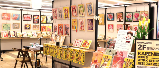 写真は個展の様子 所蔵アート200点ほどございます。 |